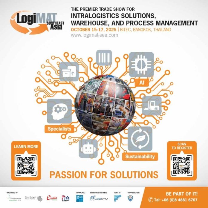 LogiMAT Southeast Asia 2025 – The Premier Trade Show for Intralogistics Solutions, Warehouse, and Process Management พบกับมหกรรมงานแสดงสินค้าชั้นนำระดับโลกด้านโซลูชันระบบโลจิสติกส์ภายใน และการบริหารจัดการกระบวนการของอุตสาหกรรม ตั้งแต่การจัดหา การผลิต จนถึงการจัดส่งสินค้า โซลูชั่นคลังสินค้าครบวงจร ระหว่างวันที่ 15 – 17 ตุลาคม 2568 ณ ไบเทค บางนา HALL 100 กรุงเทพฯ เวลา 10.00 – 18.00 น. ภายใต้แนวคิด “Passion for Solutions” จัดพร้อมกันกับงาน LogiFOOD Southeast Asia 2025